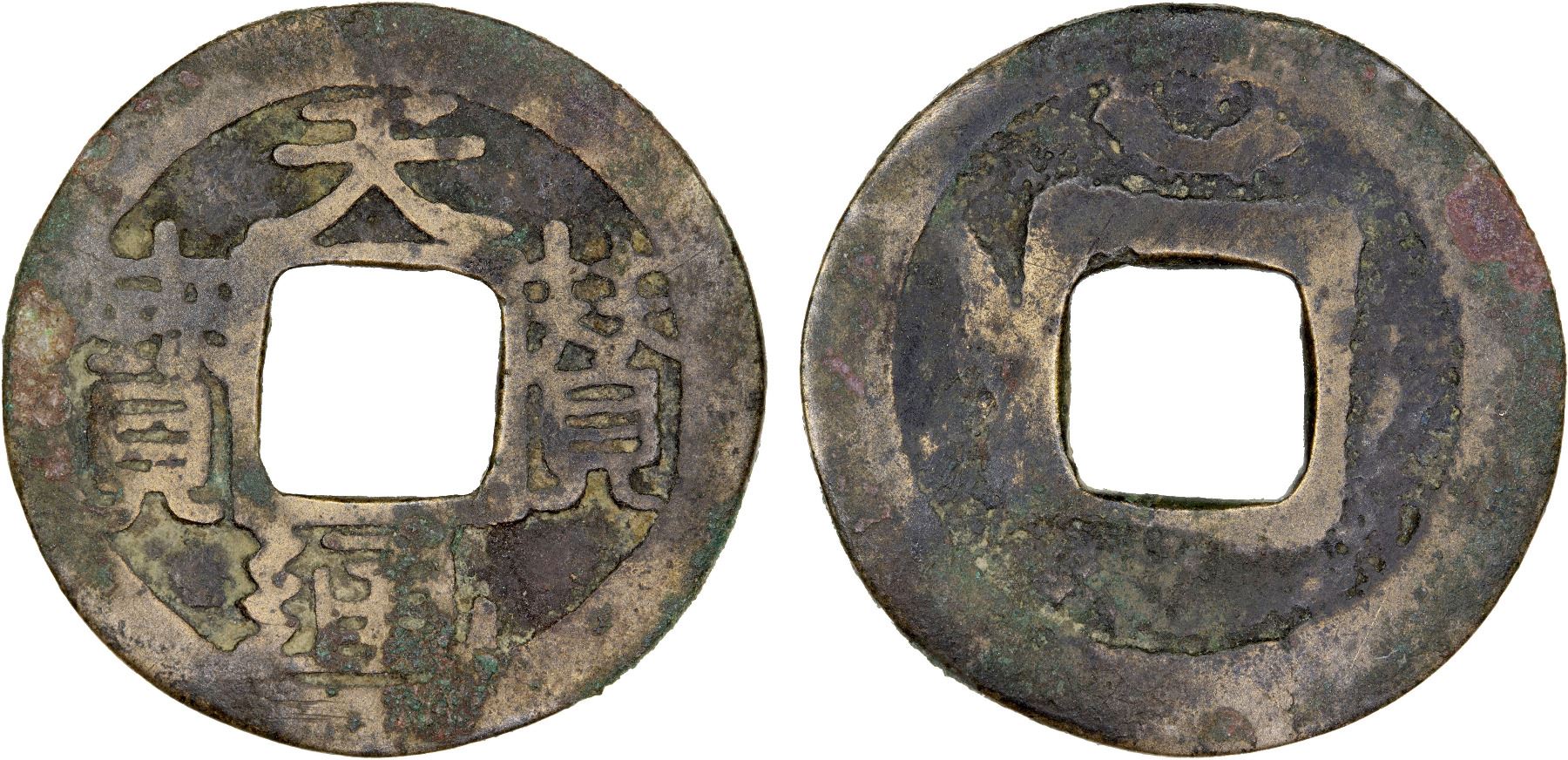LIAO: Tian Zan, 922-927, AE cash (3.3g), H-18.26v, crescent above on reverse, graded 80(03) by GBCA Grading Company, repaired, F-VF, ex Dr. Dirk Löer Collection.