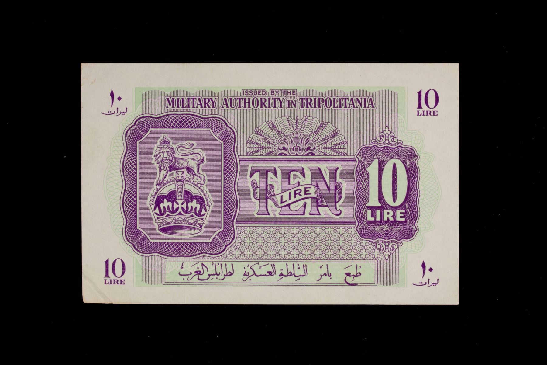 LIBYA: British Administration, 10 lire, ND (1943), Pick-M4a, a corner fold, but generally bright and crisp, XF.