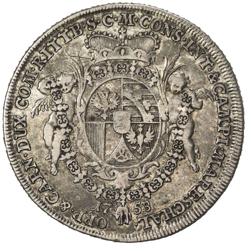 LIECHTENSTEIN: Joseph Wenzel, 1748-1772, AR ½ thaler (13.89g), 1758, Cr-1, F-VF, ex Hans Mondorf Collection.