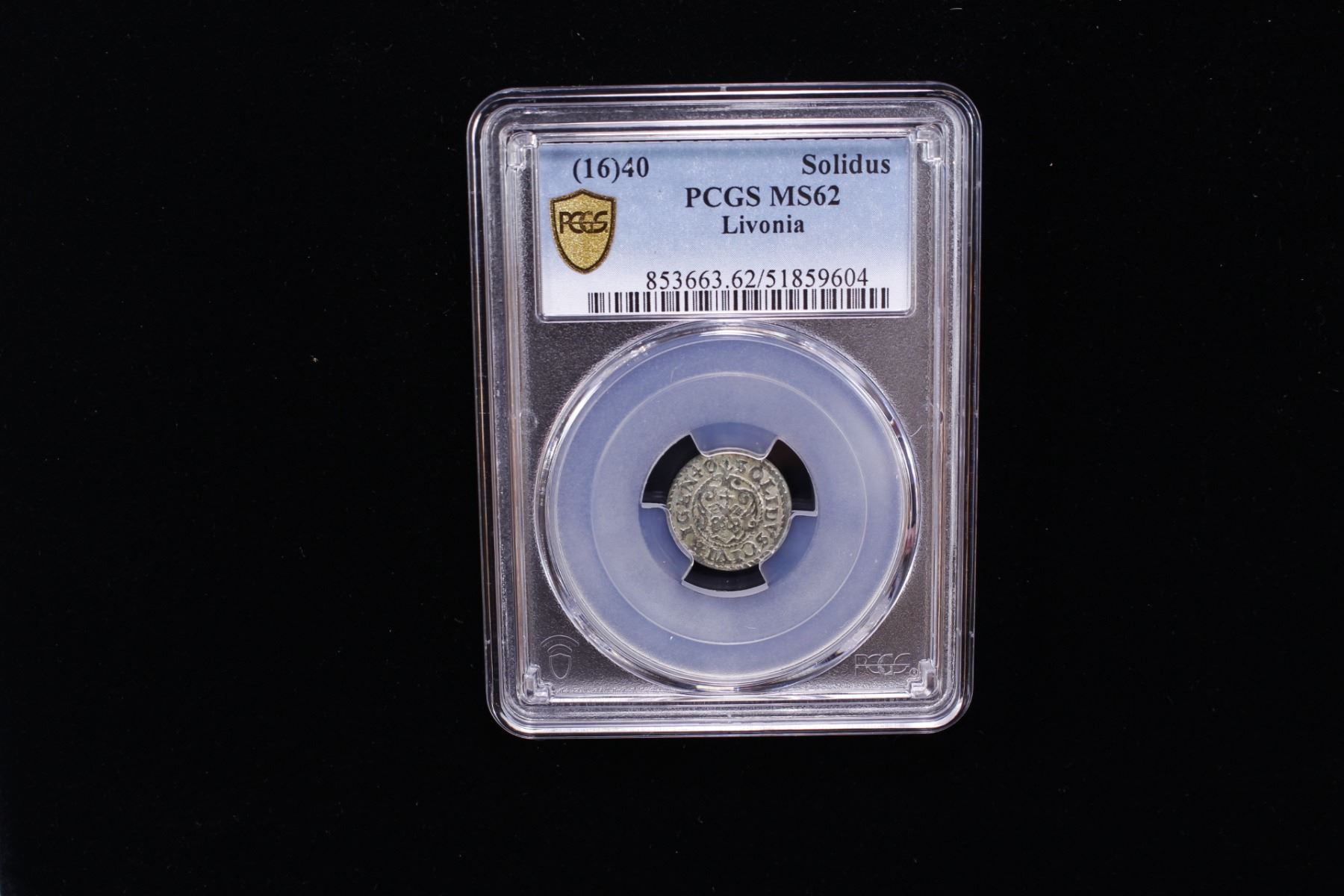 LIVONIA (SWEDISH): Christina, 1632-1654, BI solidus, Riga, [16]40, KM-21, Haljak-1520, an attractive example, PCGS graded MS62.