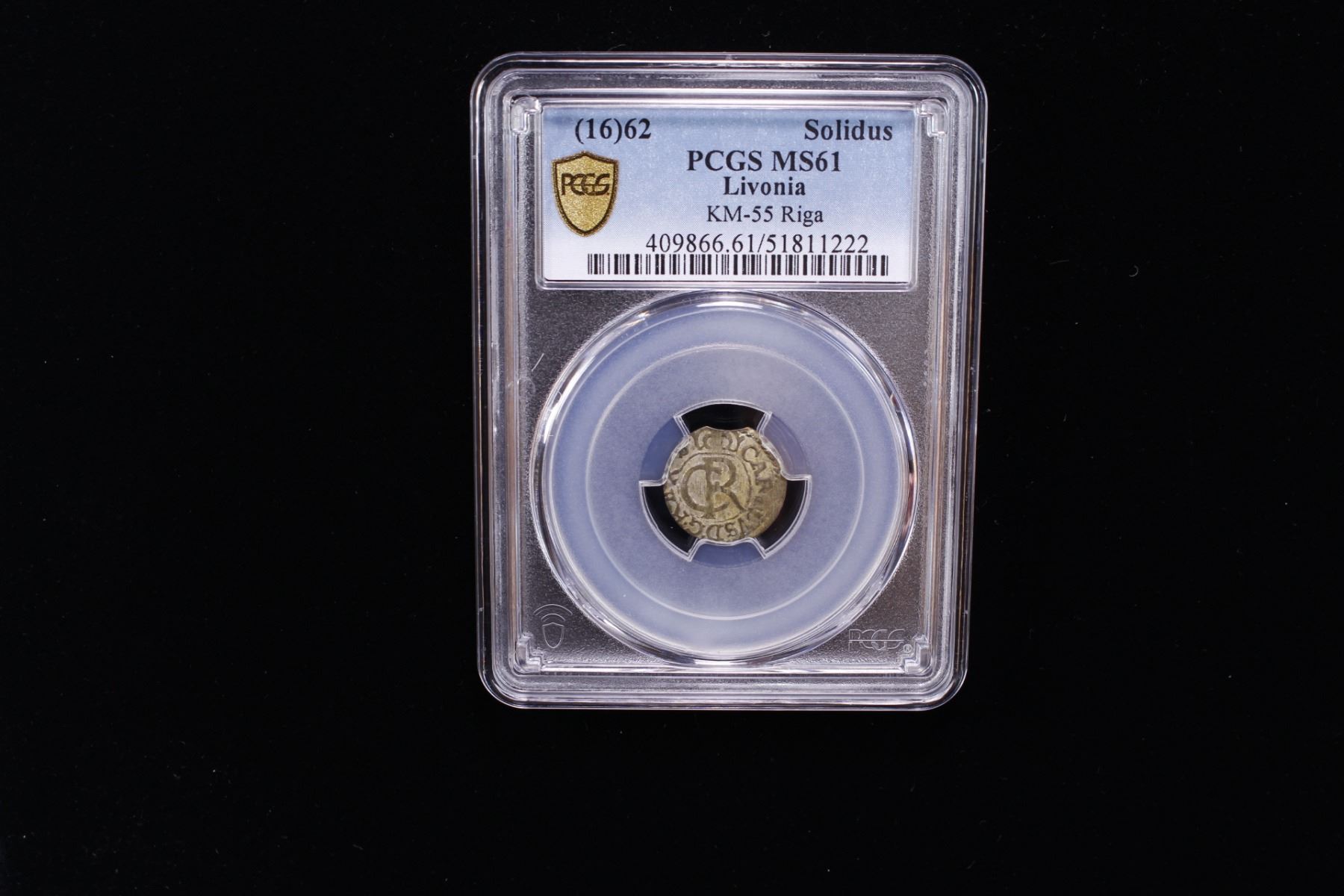LIVONIA (SWEDISH): Karl XI, 1660-1697, BI solidus, Riga, [16]62, KM-55, a pleasing example, PCGS graded MS61.