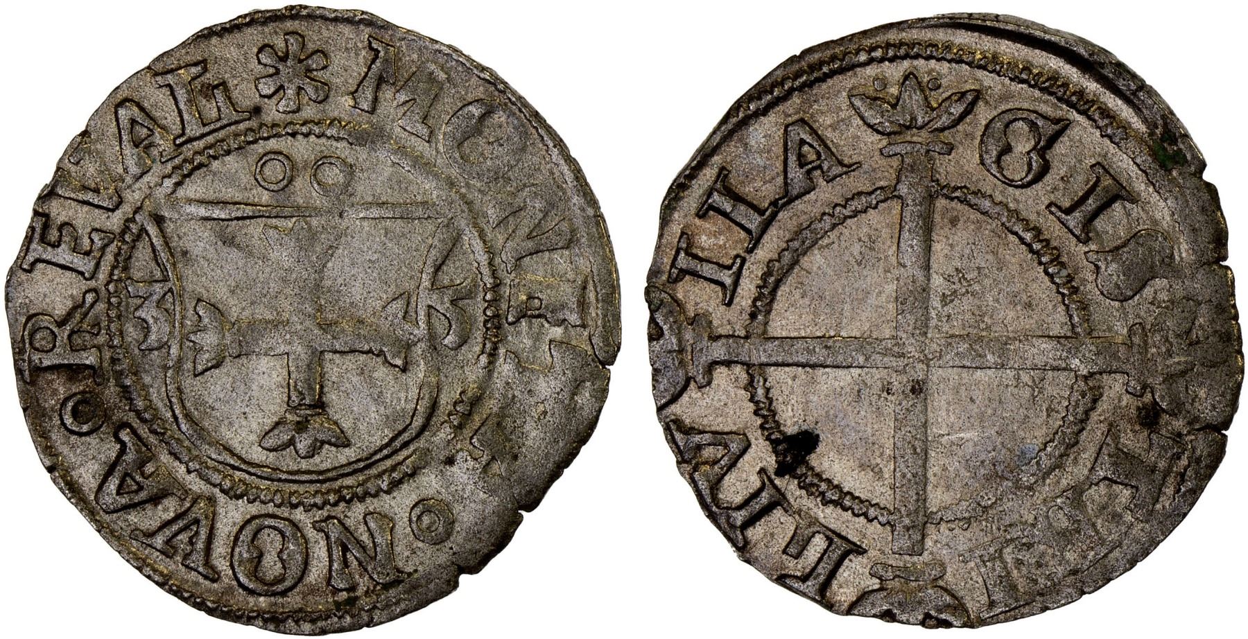 LIVONIAN ORDER: Hermann Hasenkamp von Brüggenei, 1535-1549, BI schilling (1.27g), [15]35, Haljak-139ff, shield flanked by the last two digits of the date, two annulets above, light luster, AU.