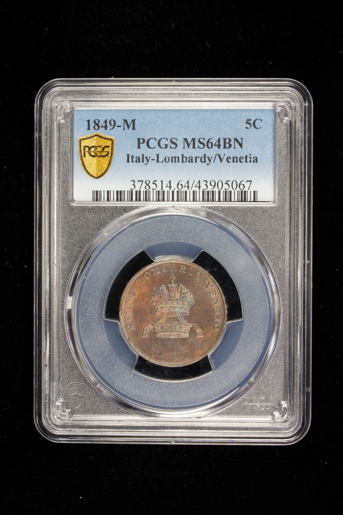 LOMBARDY-VENETIA: Franz Joseph II, 1848-1866, AE 5 centesimi, 1849-M, PCGS MS64 BN