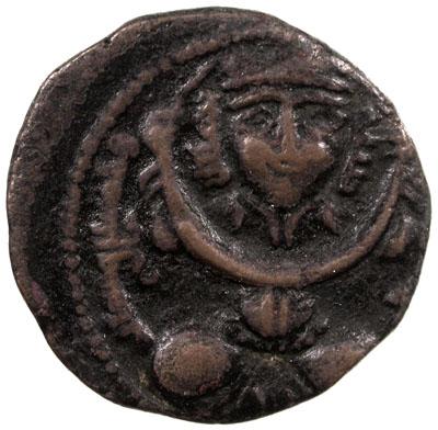 LU'LU'IDS: Badr al-Din Lu'lu', 1233-1258, AE dirham (7.73g), al-Mawsil, AH655, A-1874.2, SS-71, seated figure holding crescent, pleasing strike, Very Fine, R.
