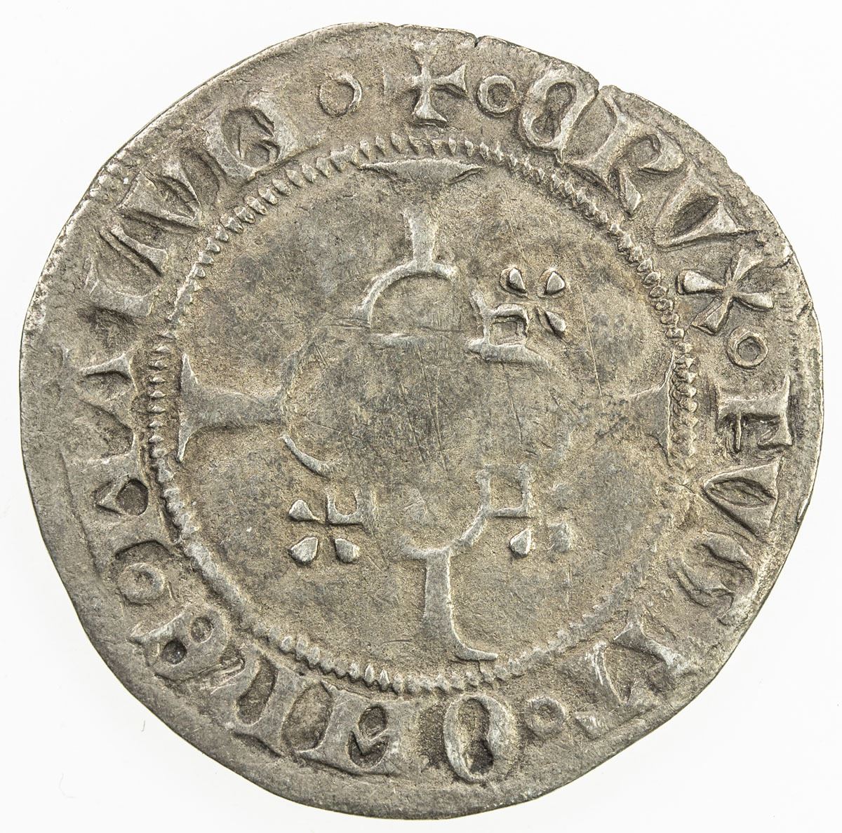 LÜBECK: Hanseatic City, AR schilling (2.04g), Behrens-62; Jesse-522, struck after 1468, double-headed imperial eagle // cross with arms within central quadrilobe, Fine.