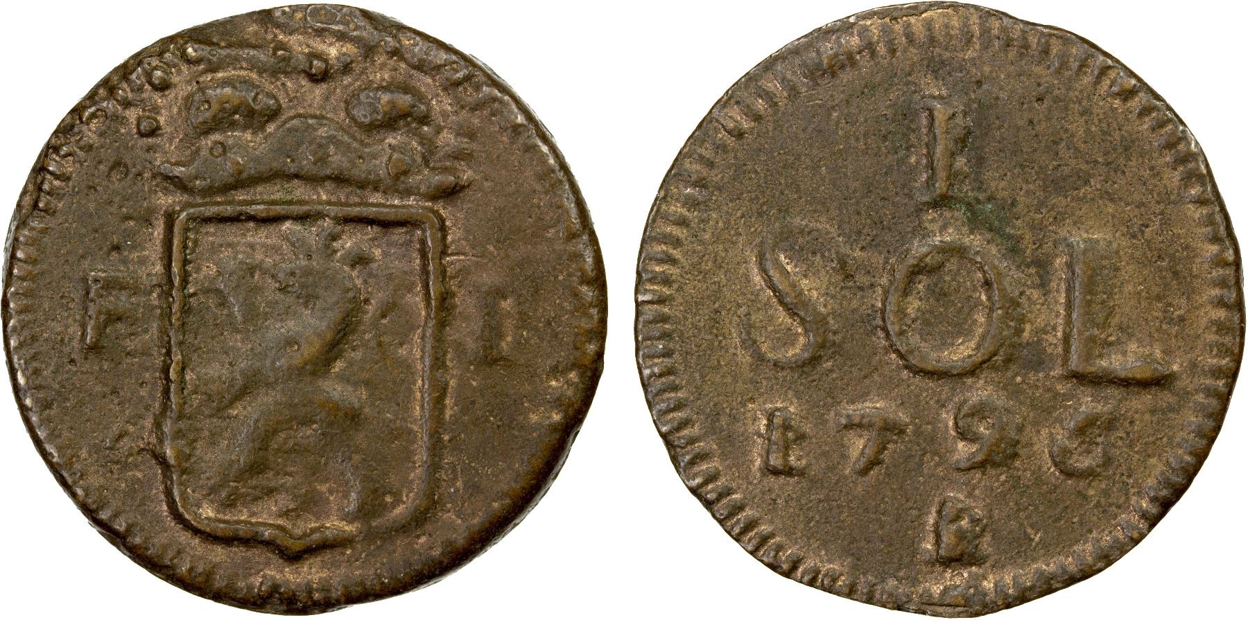 LUXEMBOURG: Frans II, 1792-1795, AE sol (17.26g), 1795, KM-19, siege issue, cast, one-year type, EF, ex Joe Sedillot Collection. The siege of Luxembourg was a siege by France of the Habsburg-held Fortress of Luxembourg that lasted from 1794 until June 7, 1795, during the French Revolutionary Wars. Although the French army failed to breach the walls of the city, which were renowned as amongst the best in the world, the fortress was forced to surrender after more than seven months.