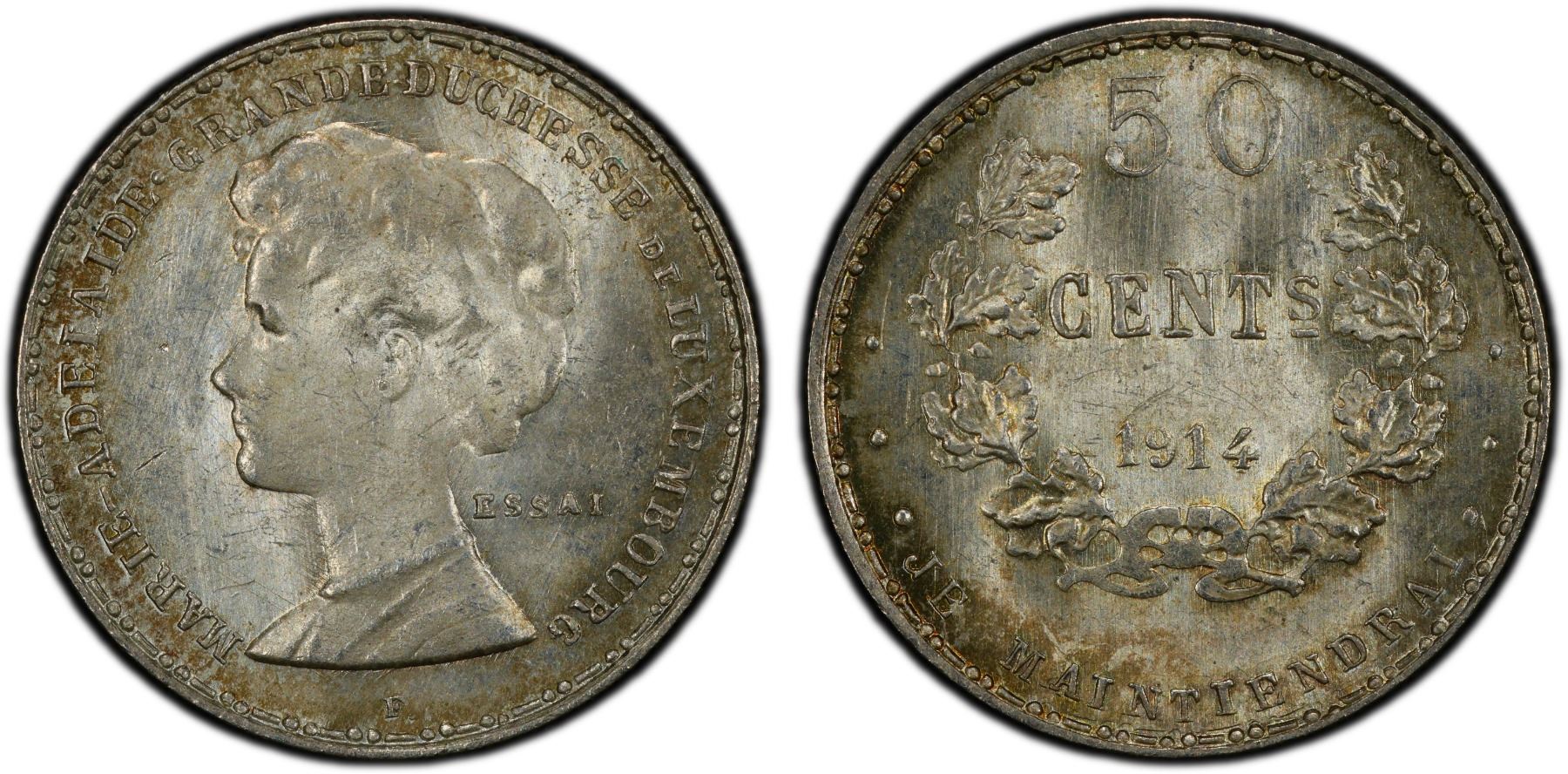 LUXEMBOURG: Marie-Adelaïde, 1912-1919, AR 50 centimes, 1914, PCGS Specimen 65