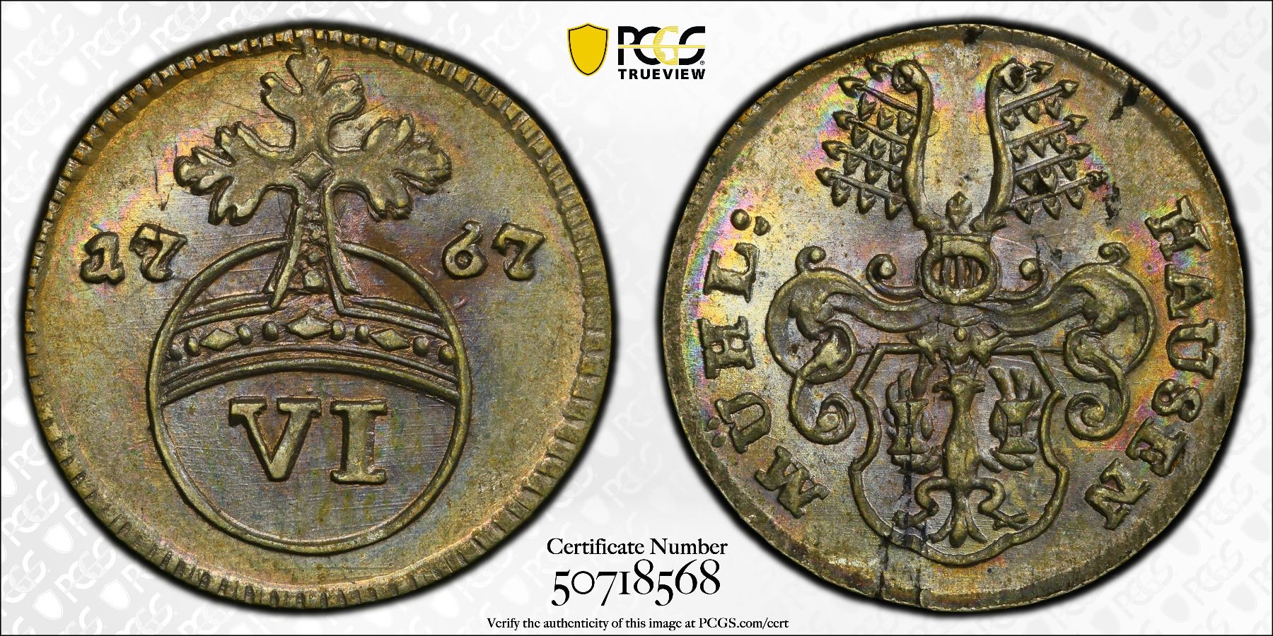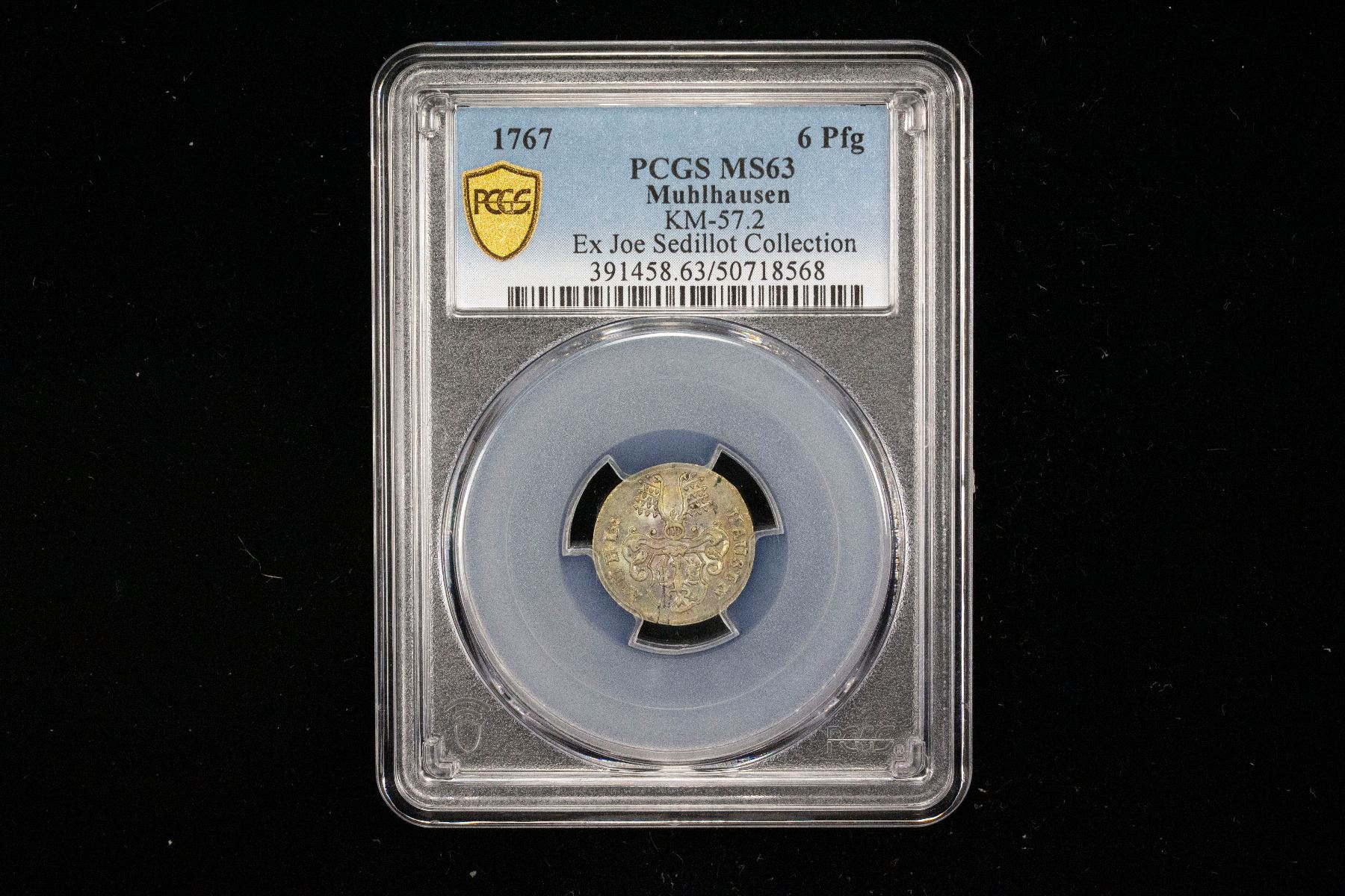 MÜHLHAUSEN: Free Imperial City, BI 6 pfennig, 1767, KM-57.2, C-3a, a lovely lustrous mint state example! PCGS graded MS63, ex Joe Sedillot Collection.