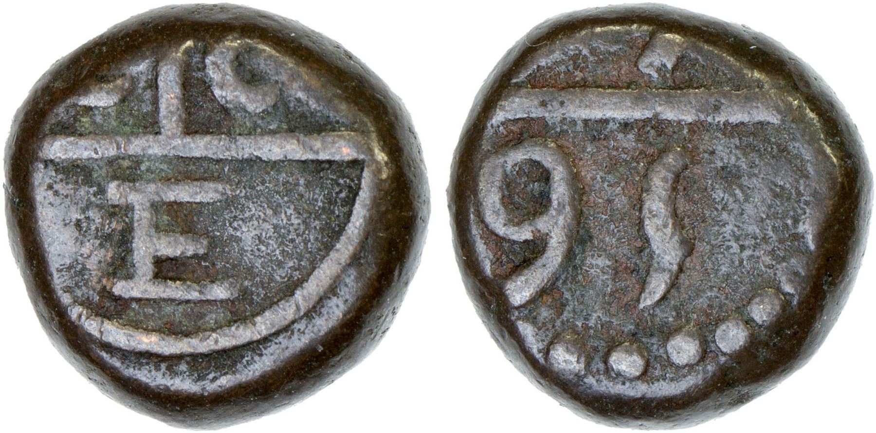 MADRAS PRESIDENCY: AE 1/2 dudu (5 cash) (2.92g), 1791, Stv-1.95. Prid-85, East India Company balemark // date in two lines; attractive example, VF, R.
