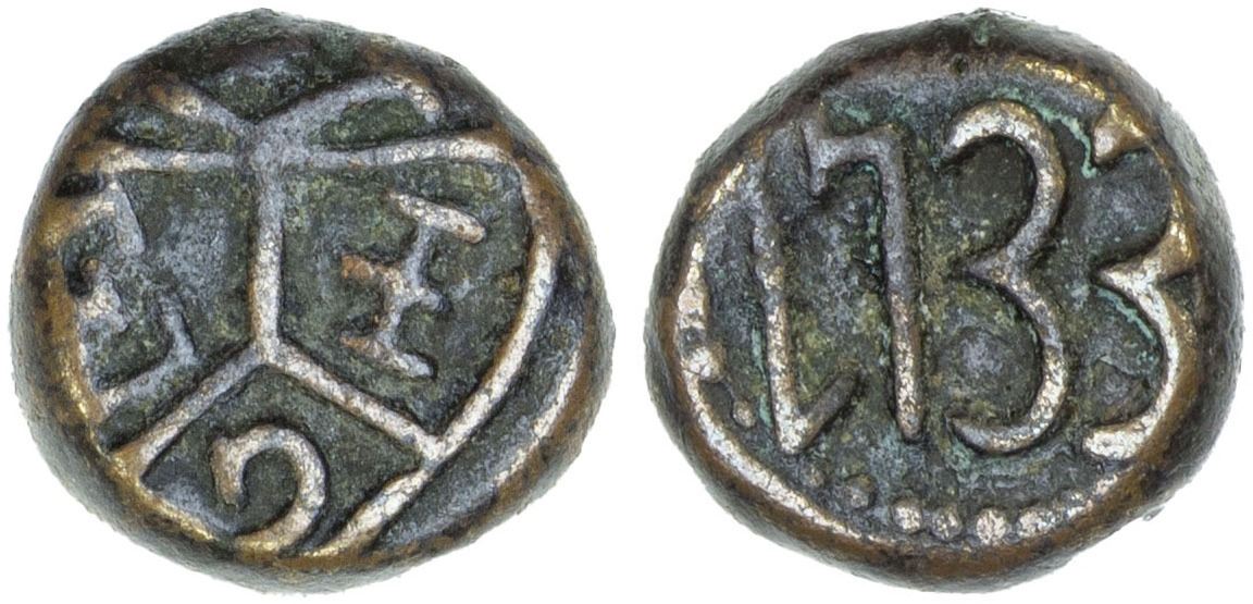 MADRAS PRESIDENCY: AE cash (1.12g), 1733, Stv-1.21, Prid-98. KM-303, East India Company balemark // date, VF.
