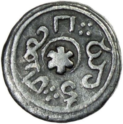 MADRAS PRESIDENCY: AR fanam (0.93g), ND (1807), KM-337, FANAM around star, without branches below / Telugu & Tamil text around star-in-crescent, VF.