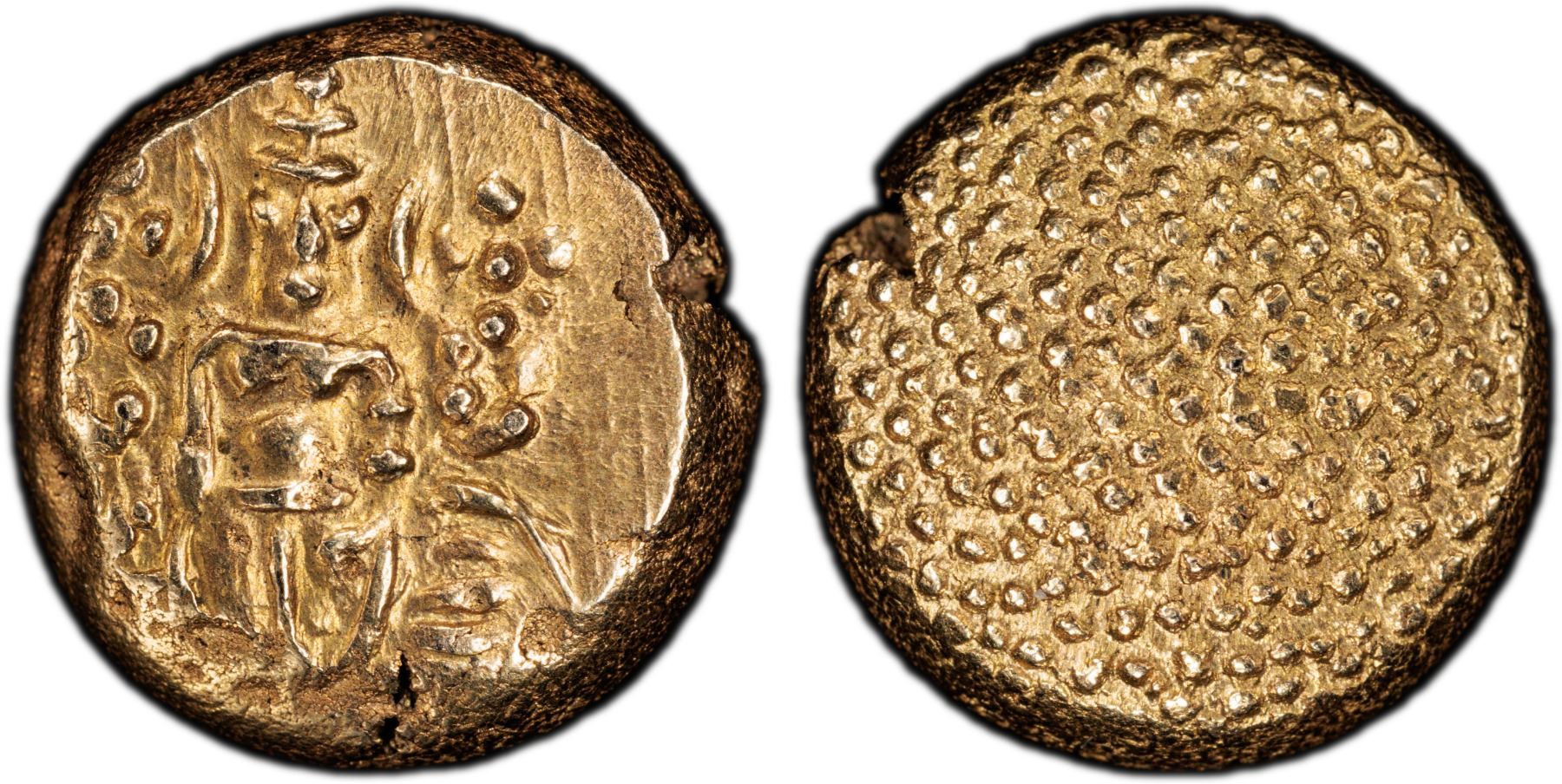 MADRAS PRESIDENCY: AV pagoda (3.39g), ND (1678-1740), KM-288, Fr-1570. Prid-2, "swami " facing // granulated field, a lovely mint state example! PCGS graded MS63.