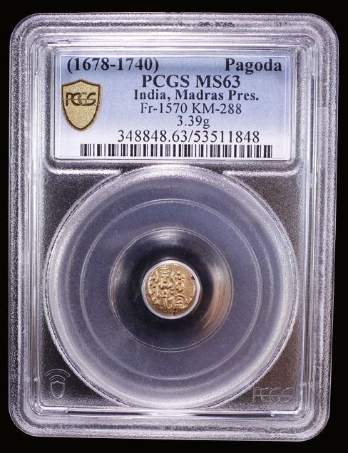 MADRAS PRESIDENCY: AV pagoda (3.39g), ND (1678-1740), PCGS MS63