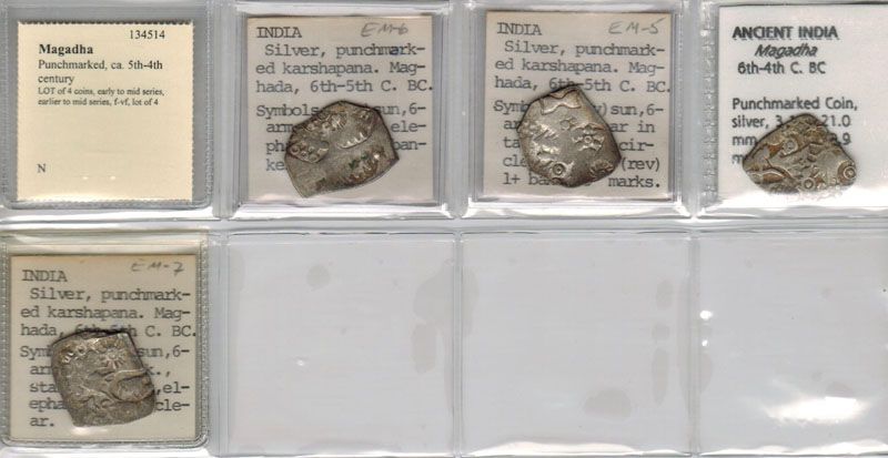 MAGADHA: Punchmarked, ca. 5th-4th century, LOT of 4 coins, early to mid series, earlier to mid series, f-vf, lot of 4 coins, ex. John Page Collection.