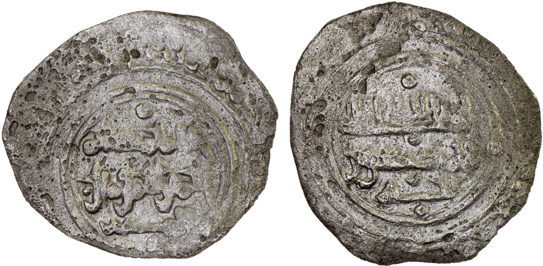 MAGHRAWA: Anonymous, ca. 950-970, AR 1/2 dirham (1.29g), NM, ND/DM, A-454M, in the name of the Fatimid imam, with the obverse legend al-imam abi tamim / amir al-mu'minin / al-mu'izz, which is the Fatimid Imam al-Mu'izz (953-975); much porosity on both sides, crude VF, RRR.