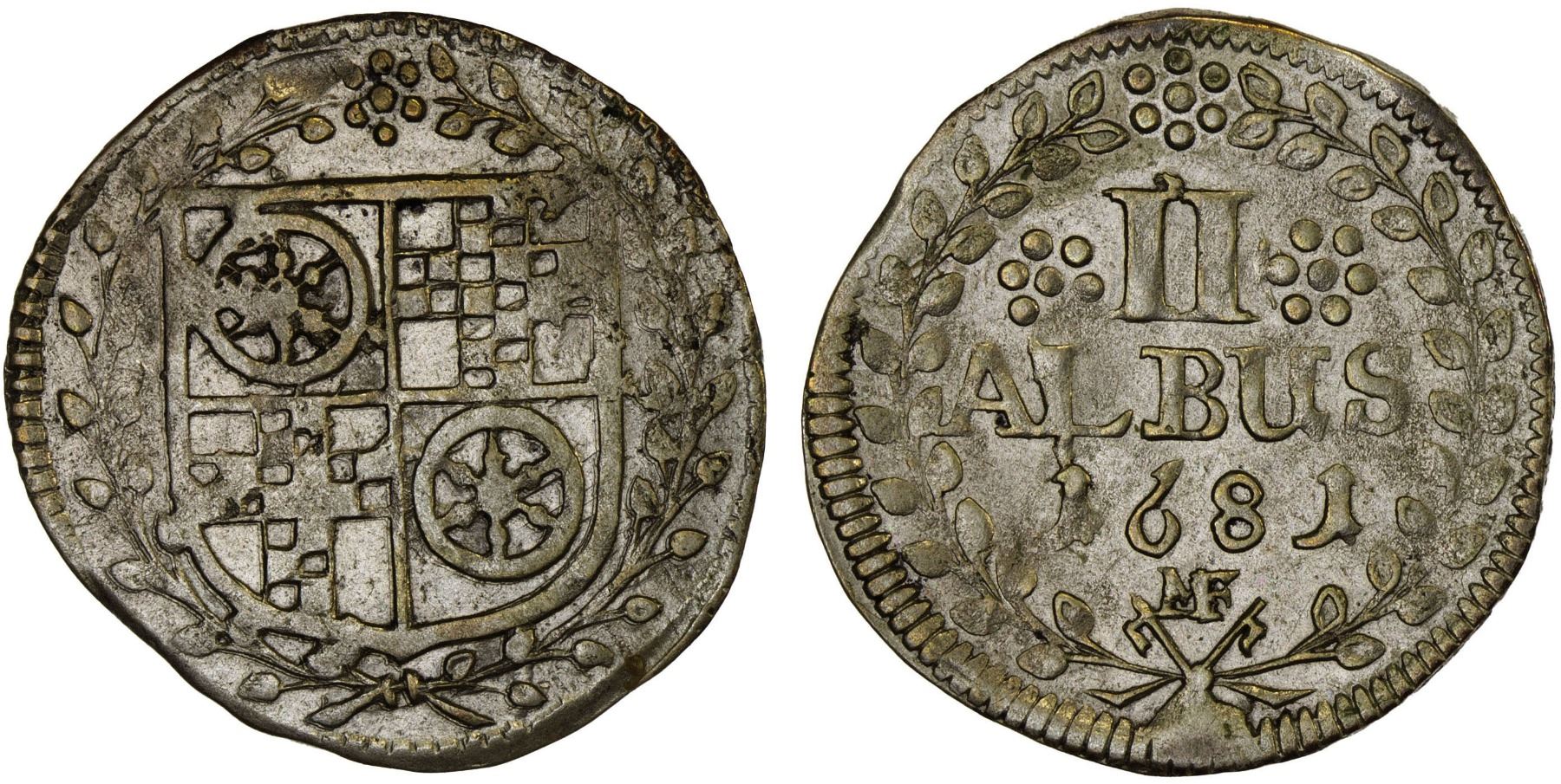 MAINZ (ARCHBISHOPRIC): Anselm Franz von Ingelheim, 1679-1695, AR 2 albus (1.79g), 1681 MF, KM-184, VF.