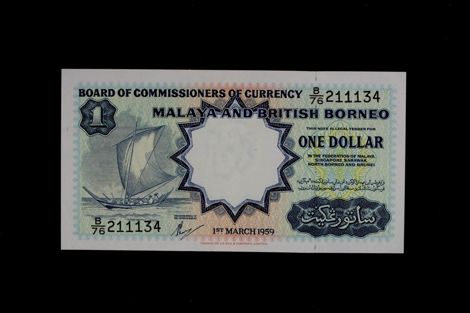 MALAYA & BRITISH BORNEO: 1 dollar, 1.3.1959, Pick-8A, bright colors, AU.