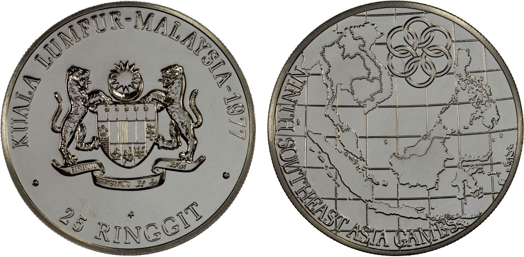 MALAYSIA: AR 25 ringgit, 1977, KM-23, 9th Southeast Asian Games, struck at the Franklin Mint, BU.