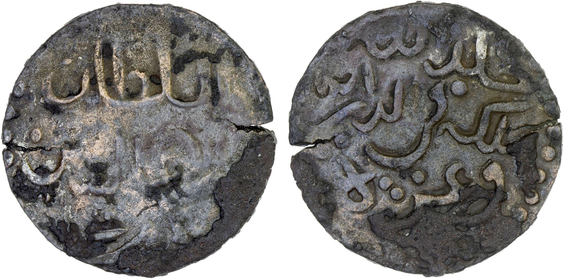KEDAH: Ala'uddin, ca. 17th century, silvered tin tarra (8.59g), SS-5Avar, al-sultan `ala' al-din mukaram shah // khallada Allah mulkahu fi al-din al-haqq wa-'izzahu ("May Allah perpetuate his reign in the religion of the truth and his glory"), light smoothing, some peripheral adhesions, F-VF, RRR. This example is the same type as the plate example of SS-5, though Singh gives a different ruler's name (Zia'uddin) and a completely different reading of the reverse side. Similar to the otherwise unknown Awaluddin (cf. our Auction 41, Lot 1445), there is no Ala'uddin among the list of rulers of Kedah. This coin is one of the only two examples we are aware of beside Singh's plate example.