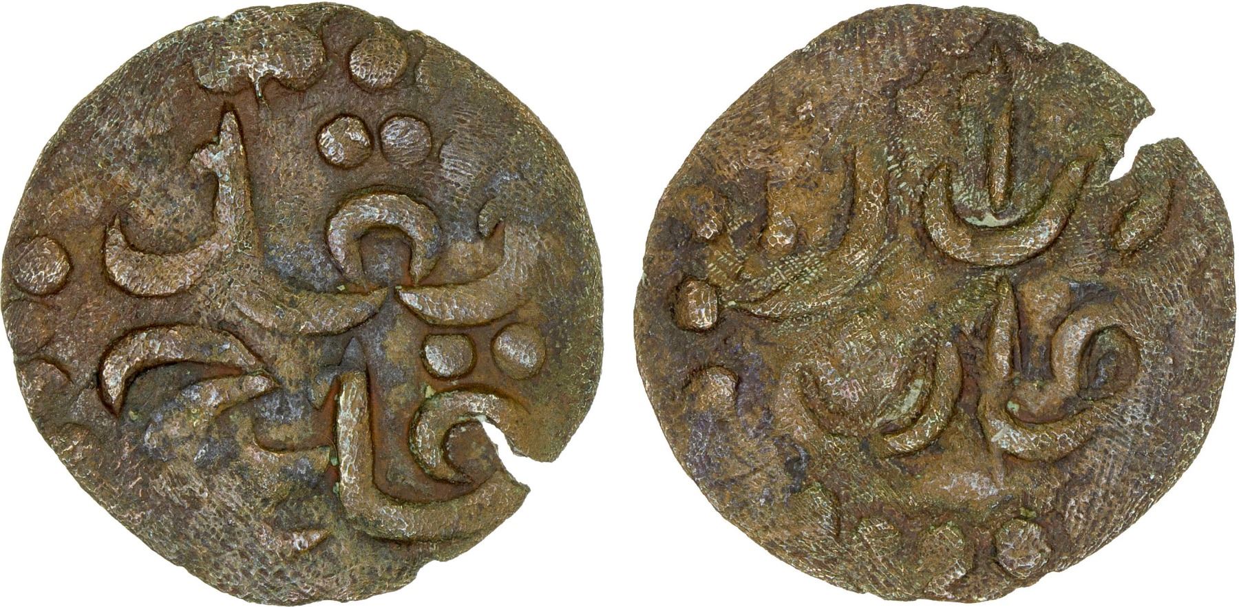 KEDAH: Anonymous, AE tarra (1.35g), ca. late 17th century, SS-7 (sketched illustration), Millies-234, naqd kedah // darul aman, border of dots on both sides, Choice VF, RRR. Singh reads the word above kedah as belanja ("currency"). But on this example, it is clearly naqd ("money").