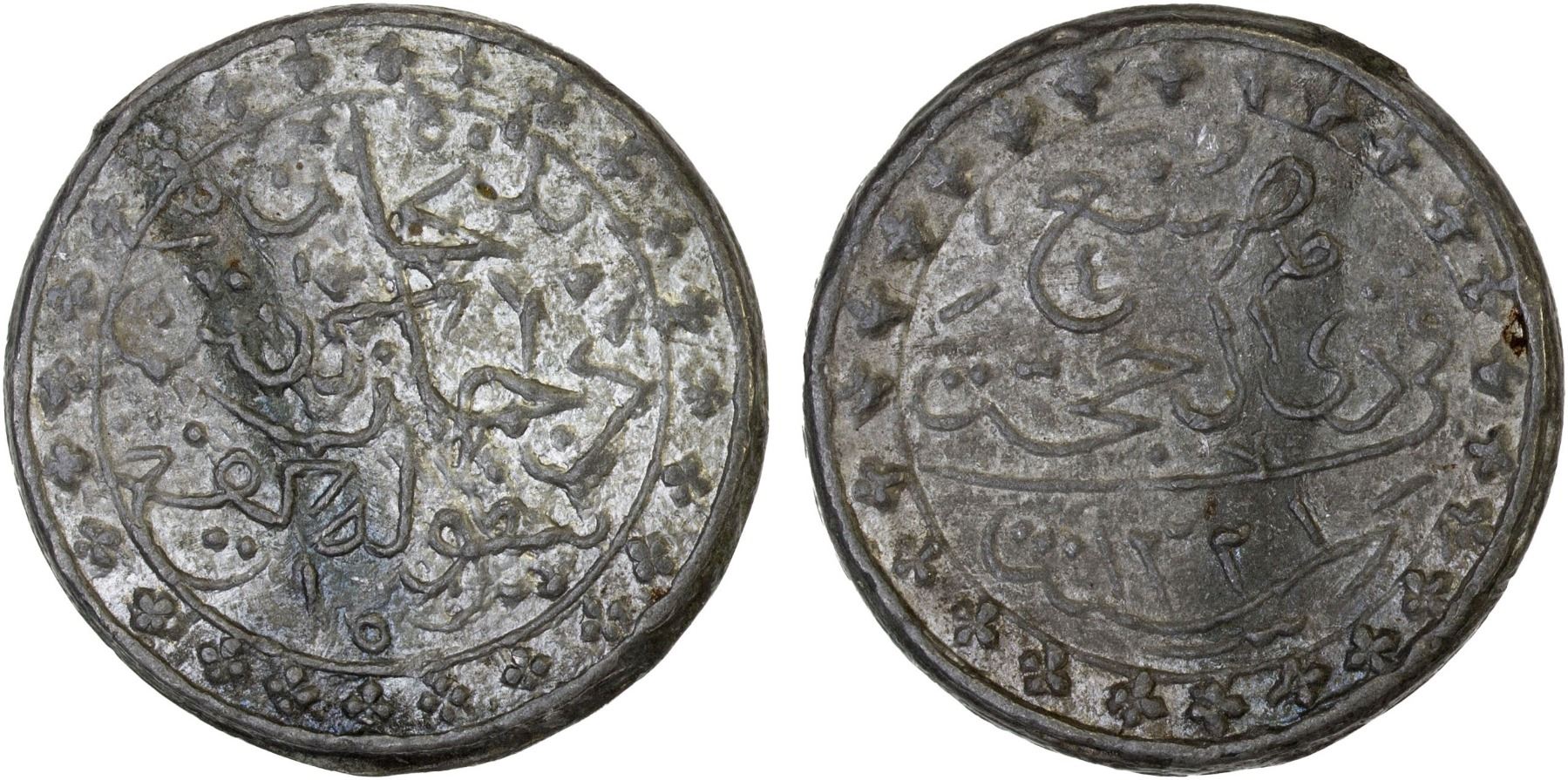 KELANTAN: Muhammad IV, 1900-1920, tin 10 kepings (13.13g), AH1321, SS-21, KM-20. Prid-135, Jawi legends belanjaan kerajaan kelantan sepuloh keping ("currency of the government of Kelantan, ten kepings"), numeral 10 below // date formula suni'a fi dhi'l-hijja sanat 1321, pleasing lightly lustrous example, XF-AU.