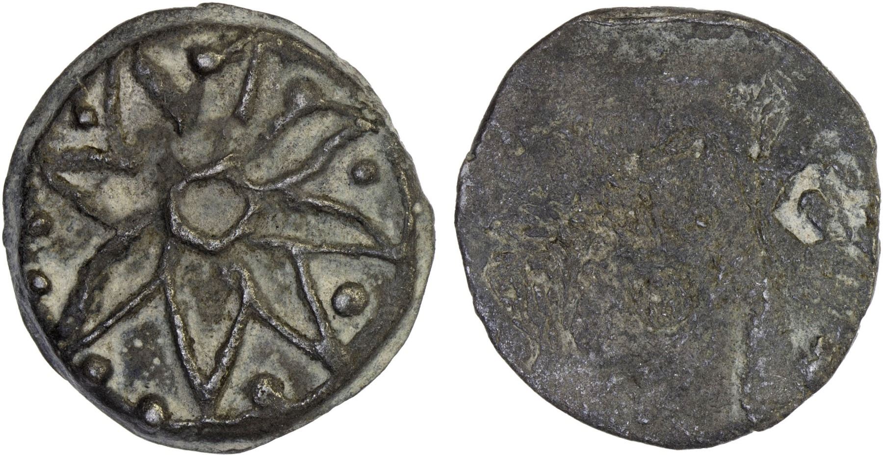 PERAK: tin pitis (3.95g), cf. SS-75, eight-petaled flower, dot(s) in each corner, uniface, unpublished type without center hole, a lovely example, XF. See our e-Auction 18, Lot 1605 for another example of this type.