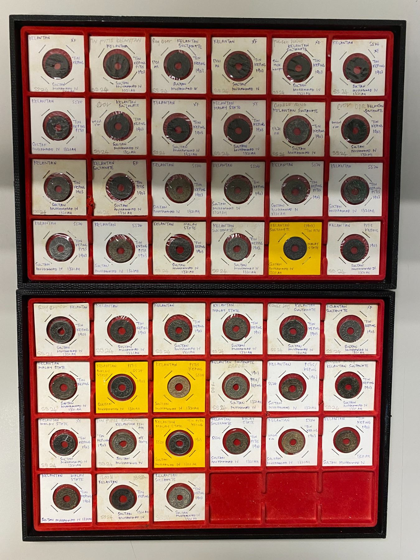 KELANTAN: Muhammad IV, 1900-1920, LOT of 45 tin pitis, AH1321, SS-24, average VF-VF+ grades, almost all well-cast without casting problems, about 10 EF or better with pleasing surfaces; retail value $500, lot of 45 pieces.