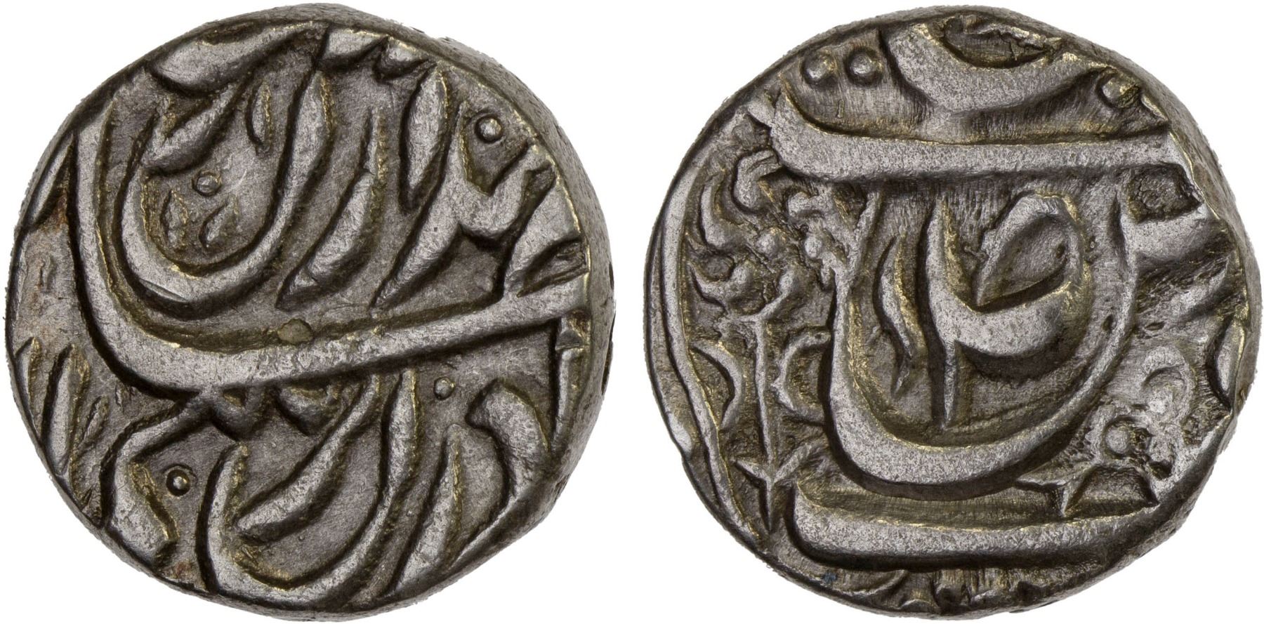 MALER KOTLA: Amir Khan, 1821-1845, AR rupee (10.88g) (Sahrind), ND, Cr-13, flower and "Suad" symbol on the reverse, XF.