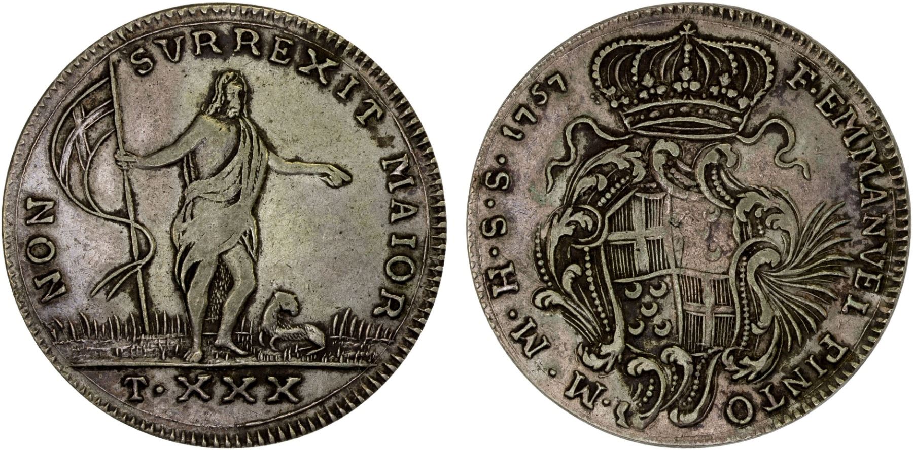 MALTA: Emmanuel Pinto, 1741-1773, AR 30 tari (28.58g), 1757, Dav-1600, Valletta Mint, once lightly cleaned and re-toned, VF.