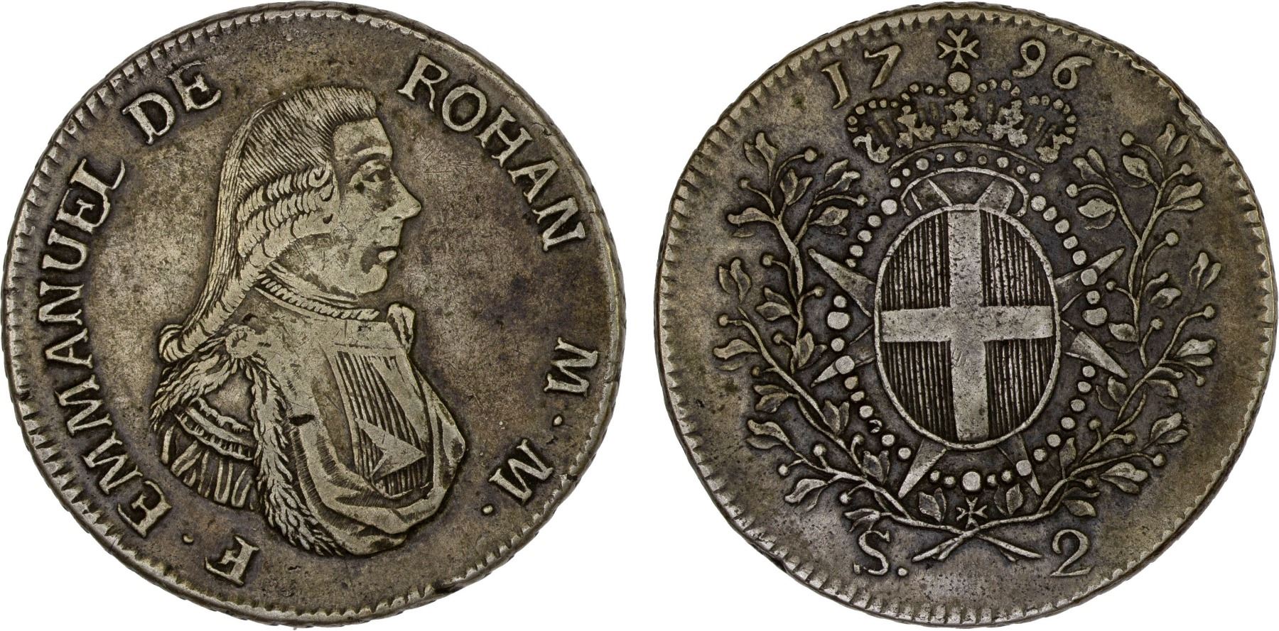 MALTA: Emmanuel de Rohan-Polduc, 1775-1797, AR 2 scudi, 1796, KM-343, an attractive example, VF.
