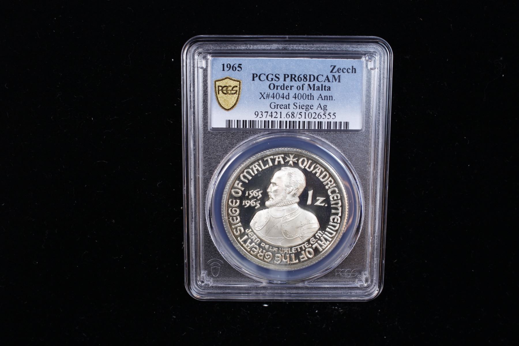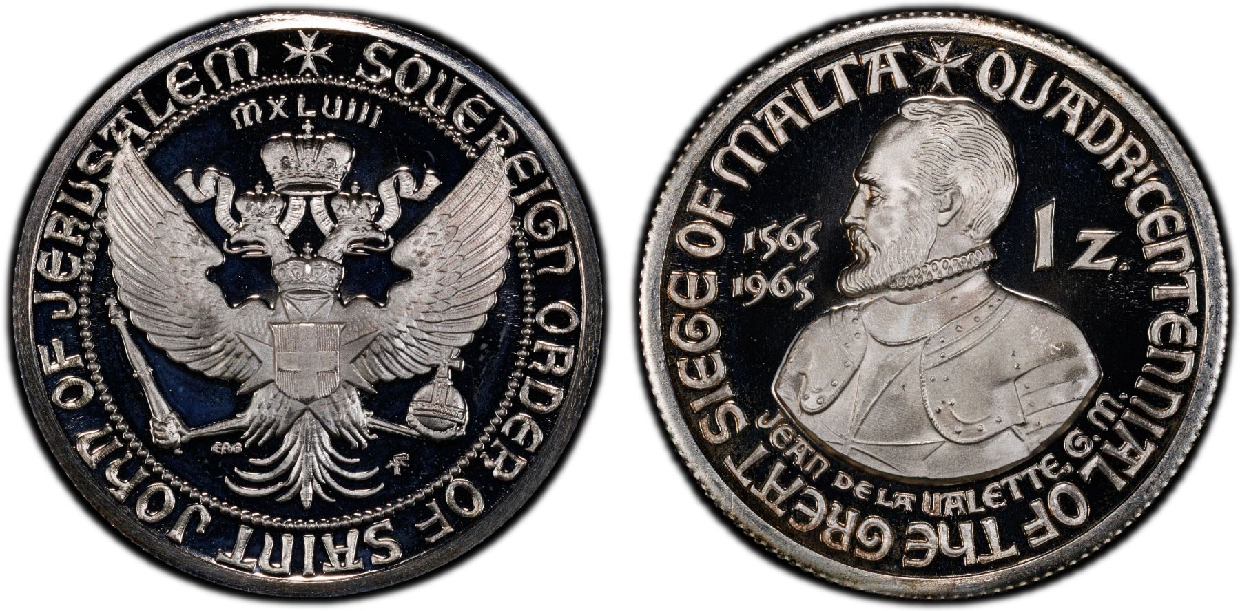 MALTA: Order of St. John of Jerusalem, AR zecchino, 1965, KM-X404d, 400th Anniversary of the Great Siege of Malta, reported mintage of only 3 pieces in .925 silver! extremely rare, PCGS graded Proof 68 CAM.