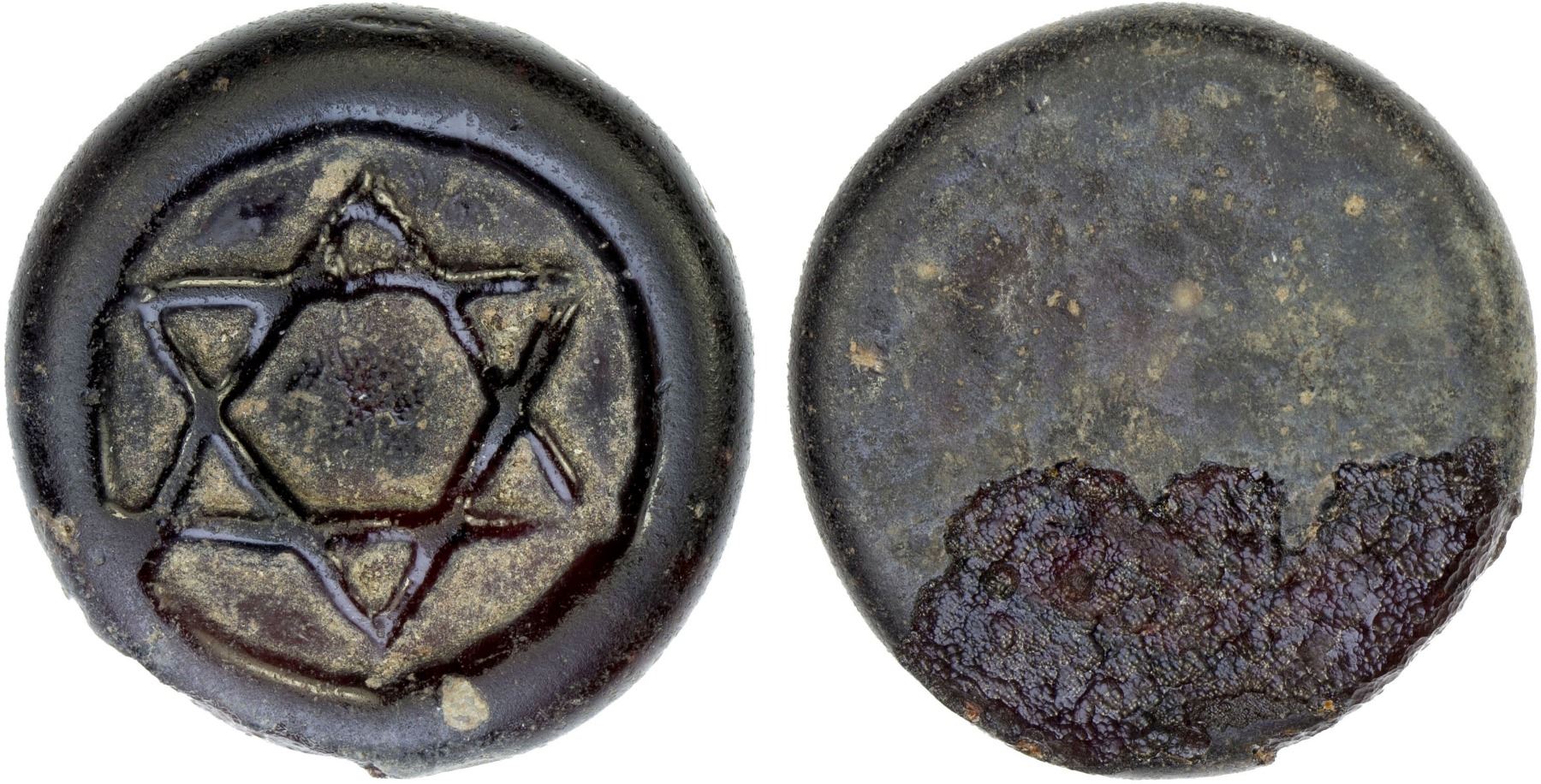 MAMLUK: Anonymous, ca. 13th/16th century, glass weight (jeton) (2.86g), A-1047, Seal of Soloman (without any letter or symbol in the center), deep rose, barely translucent, bold VF-XF, ex Ismail al-Imam Collection.