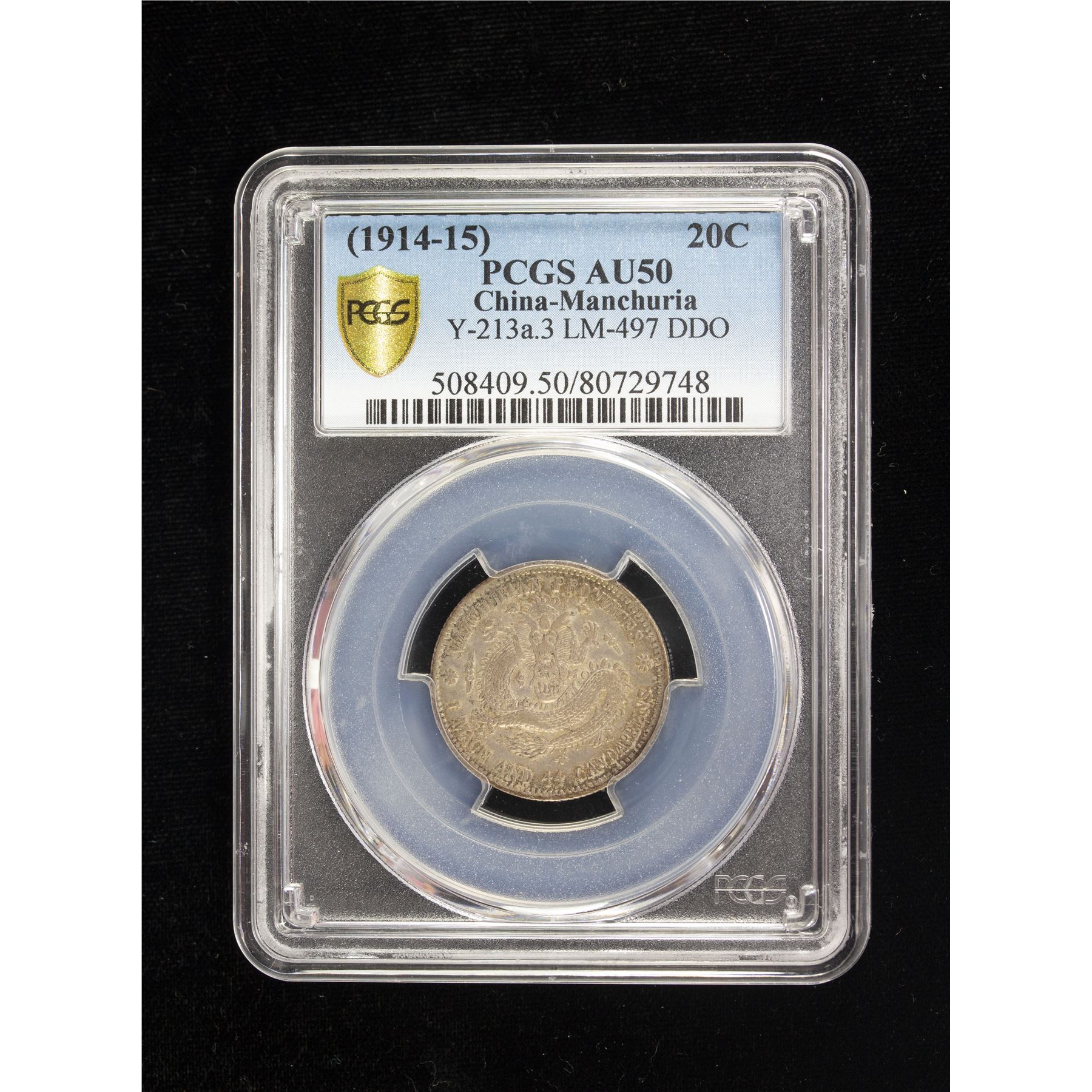 MANCHURIAN PROVINCES: Republic, AR 20 cents, ND (1914-15), Y-213a.3, L&M-497, struck in the name of the former Emperor Hsuan Tung, PCGS graded AU50.