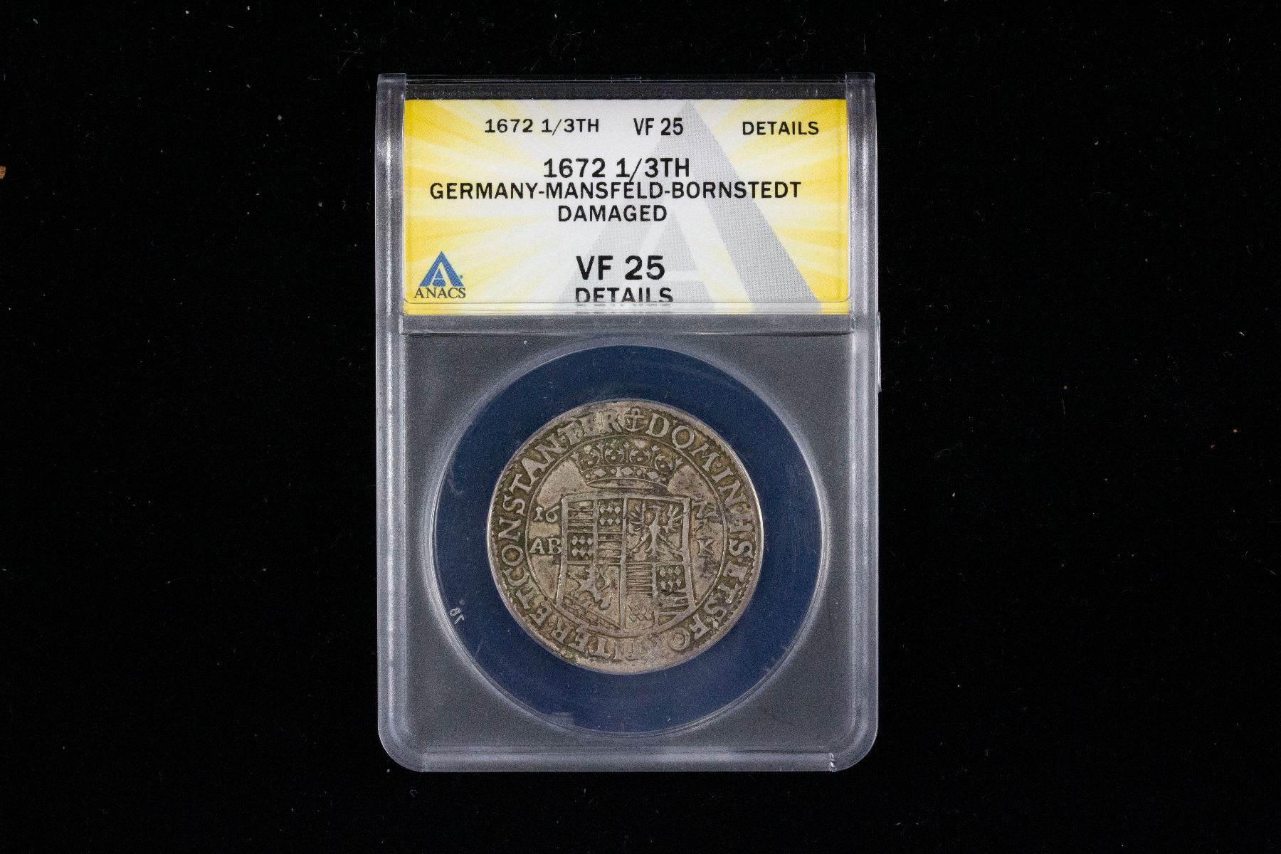 MANSFELD-BORNSTEDT: Franz Maximilian & Heinrich Franz, 1662-1715, AR 1/3 thaler, 1672, ANACS VF25