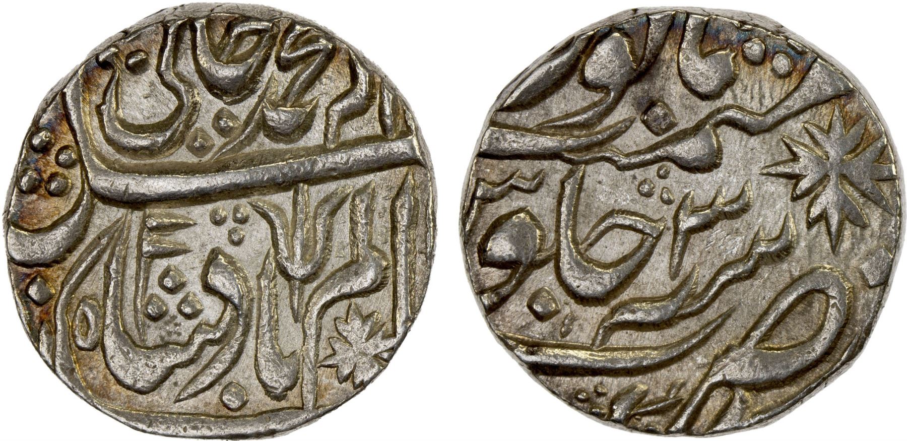 MARATHA CONFEDERACY: Kora, AR rupee (11.30g), year 3, KM-278, in the name of Shah Alam II, pataka (banner) and trisul on obverse, attractive light luster, AU.
