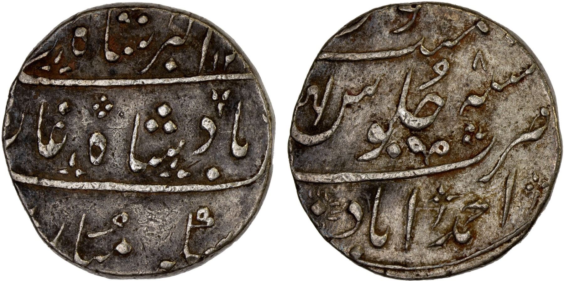 MARATHA CONFEDERACY: Peshwas, AR rupee (11.51g), AH12(30) year 8, KM-56, Cr-36, part of AH date off flan, two-year type, rare, VF.