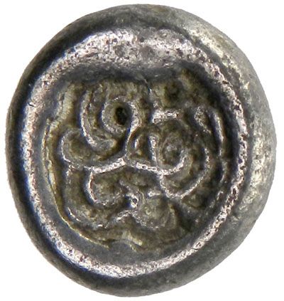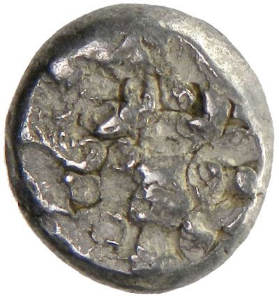 MATSYA: AR karshapana (2.96g), ca. 600-500 BC, Ra-—, Sharma 29/30 var, single punch, so-called "worms" symbol, VF, R.