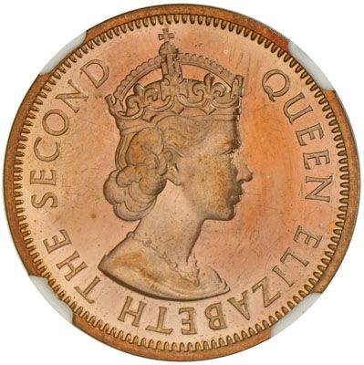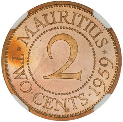 MAURITIUS: Elizabeth II, 1952-1987, 2 cents, 1959, KM-32, VIP Proof Record specimen, NGC graded PF63 RB.