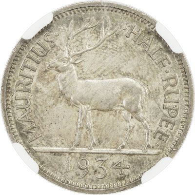 MAURITIUS: George V, 1910-1936, AR ½ rupee, 1934, KM-16, NGC graded MS63.