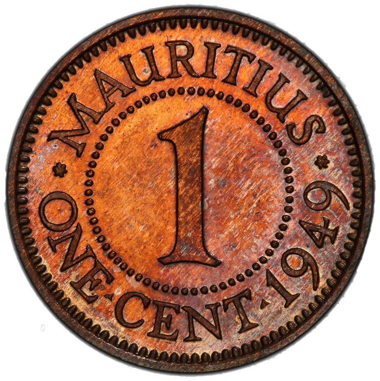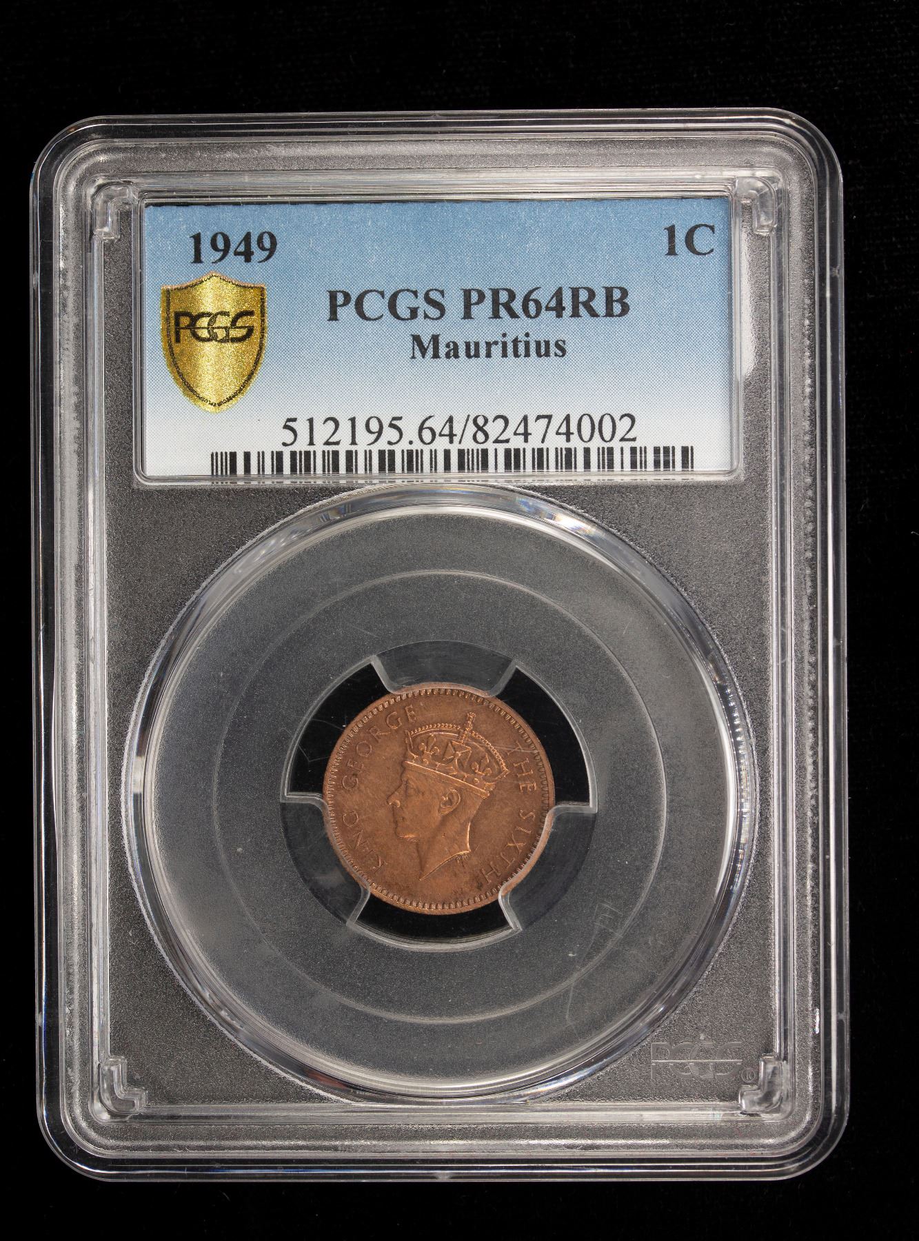 MAURITIUS: George VI, 1937-1952, 1 cent, 1949, KM-25, PCGS graded PF64 RB, R.