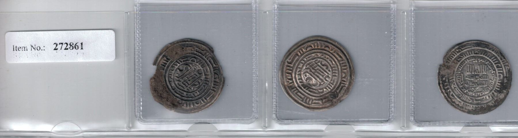 MEDIEVAL ISLAMIC:LOT of 3 uniface bracteate religious good-luck token, blundered legends both sides, all derived from the Samanid period prototypes, and probably produced in the 10th to 11th century, both choice VF condition, both with the attachments expected for such pieces; retail value $240, lot of 3 pieces.