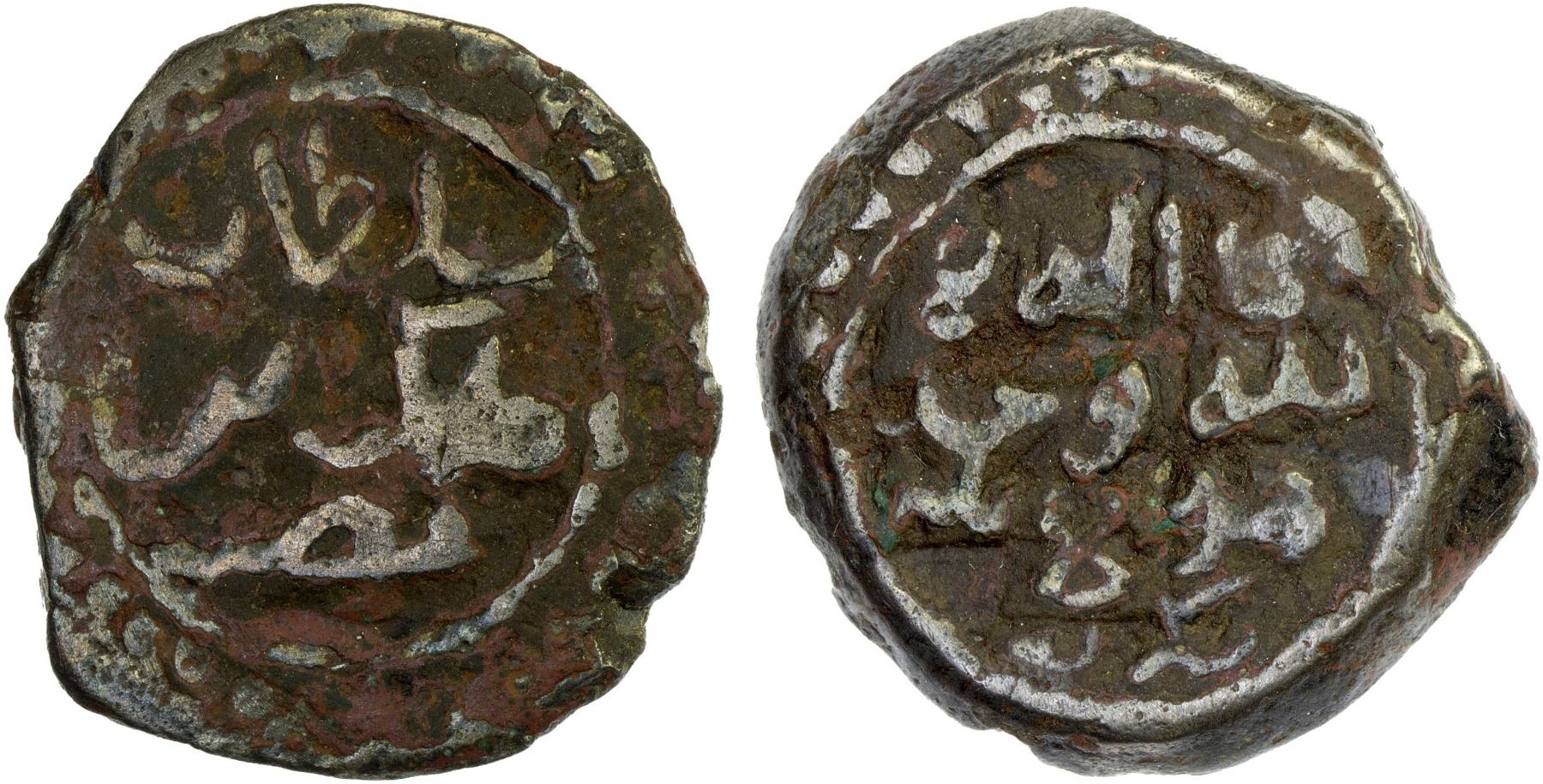 MEHRABANID: al-Malik b. Nasr, 1270s-1280s, AE heavy fals (12.69g), NM, ND, A-2355H, legend sultan / al-malik bin / nasr // first half of the kalima, weak VF, R.