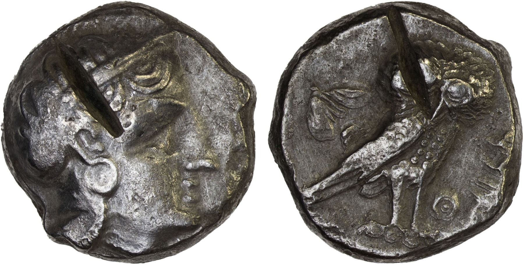 MESOPOTAMIA: Alexandrine Empire, Mazakes, satrap, ca. 331-322 BC, AR tetradrachm (16.54g), Le Rider, pp. 214-9, cf. Van Alfen Group IV, 86 (AJN 12, 2000), imitating Athenian issue, helmeted head of Athena right // owl standing right with head facing, crescent and olive spray to left, Θ and Aramaic MZDK to right, testcut on either side, light cleaning scratches, VF.