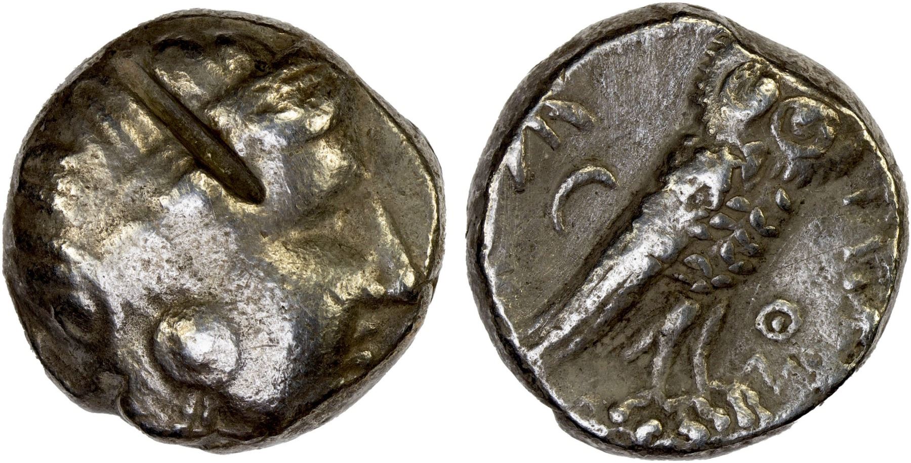 MESOPOTAMIA: Alexandrine Empire, Mazakes, satrap, ca. 331-322 BC, AR tetradrachm (16.98g), Le Rider, pp. 214-9, Van Alfen Group IV, 89 (AJN 12, 2000), imitating Athenian issue, helmeted head of Athena right // owl standing right with head facing, crescent and olive spray to left, Θ and Aramaic MZDK to right, struck with worn obverse die, testcut on obverse, light cleaning scratches, VF.