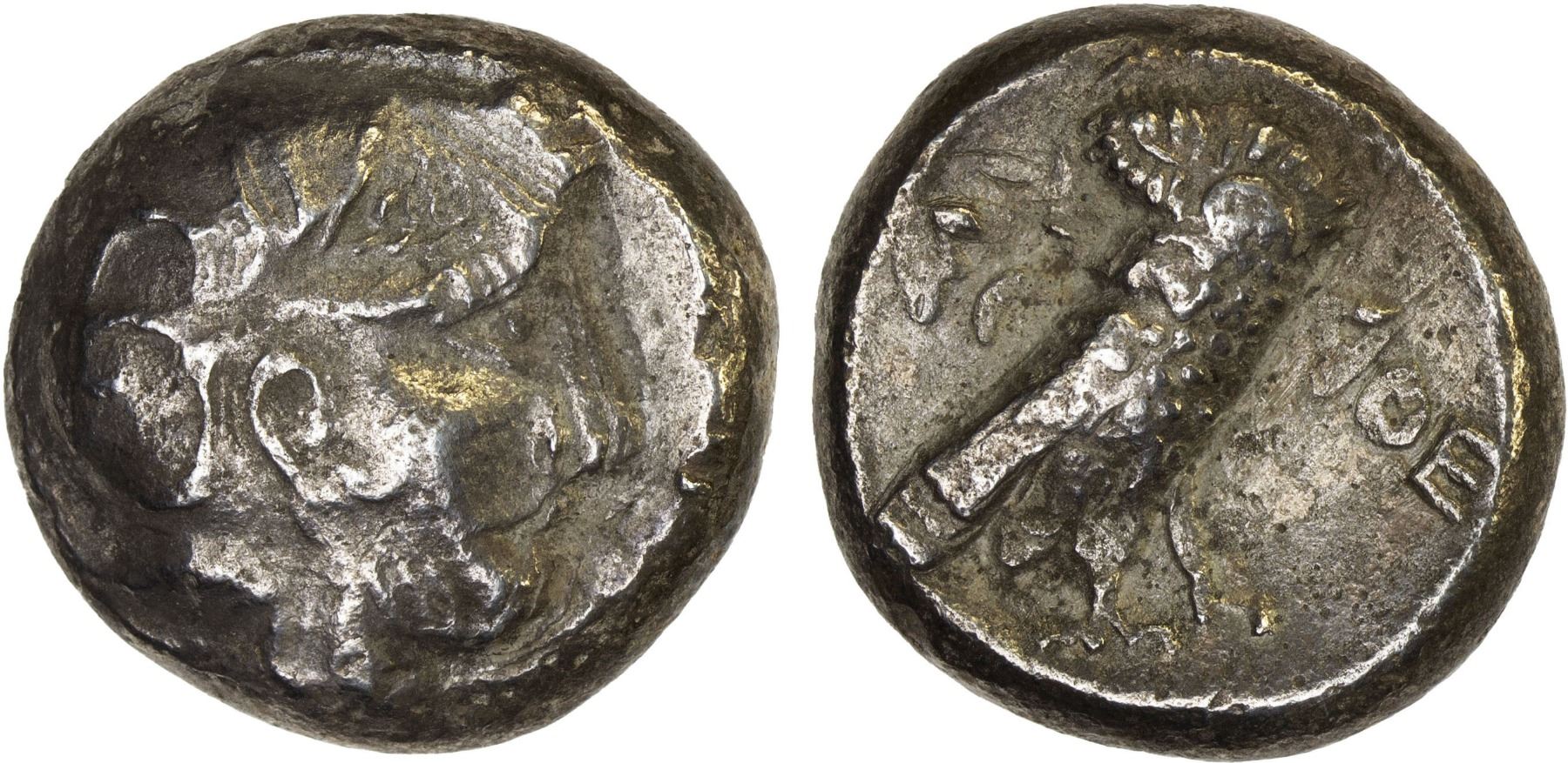 MESOPOTAMIA: Anonymous, ca. 3rd century BC, AR tetradrachm (16.44g), cf. van Alfen Group III (AJN 2004-05 16-17), cf. Zeno-114253, uncertain Near Eastern imitation of Athenian issue, stylized helmeted head of Athena right // owl standing right with head facing, AΘE to right, crudely struck, VF.