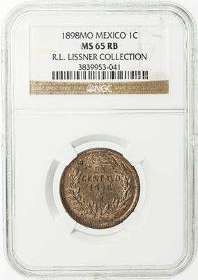 MEXICO: AE centavo, 1898-Mo, KM-393, one-year type, much red, great pedigree, NGC graded MS65 RB, ex R. L. Lissner Collection.