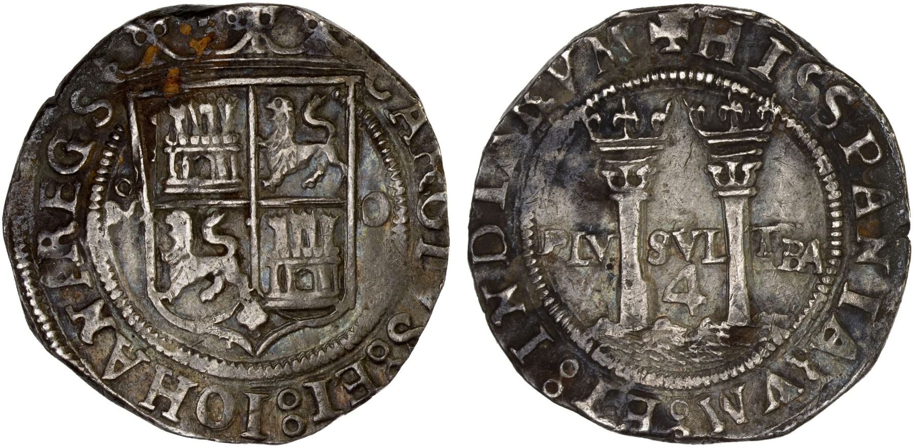 MEXICO: Carlos I & Juana, 1516-1555, AR 4 reales (13.74g), VF-XF