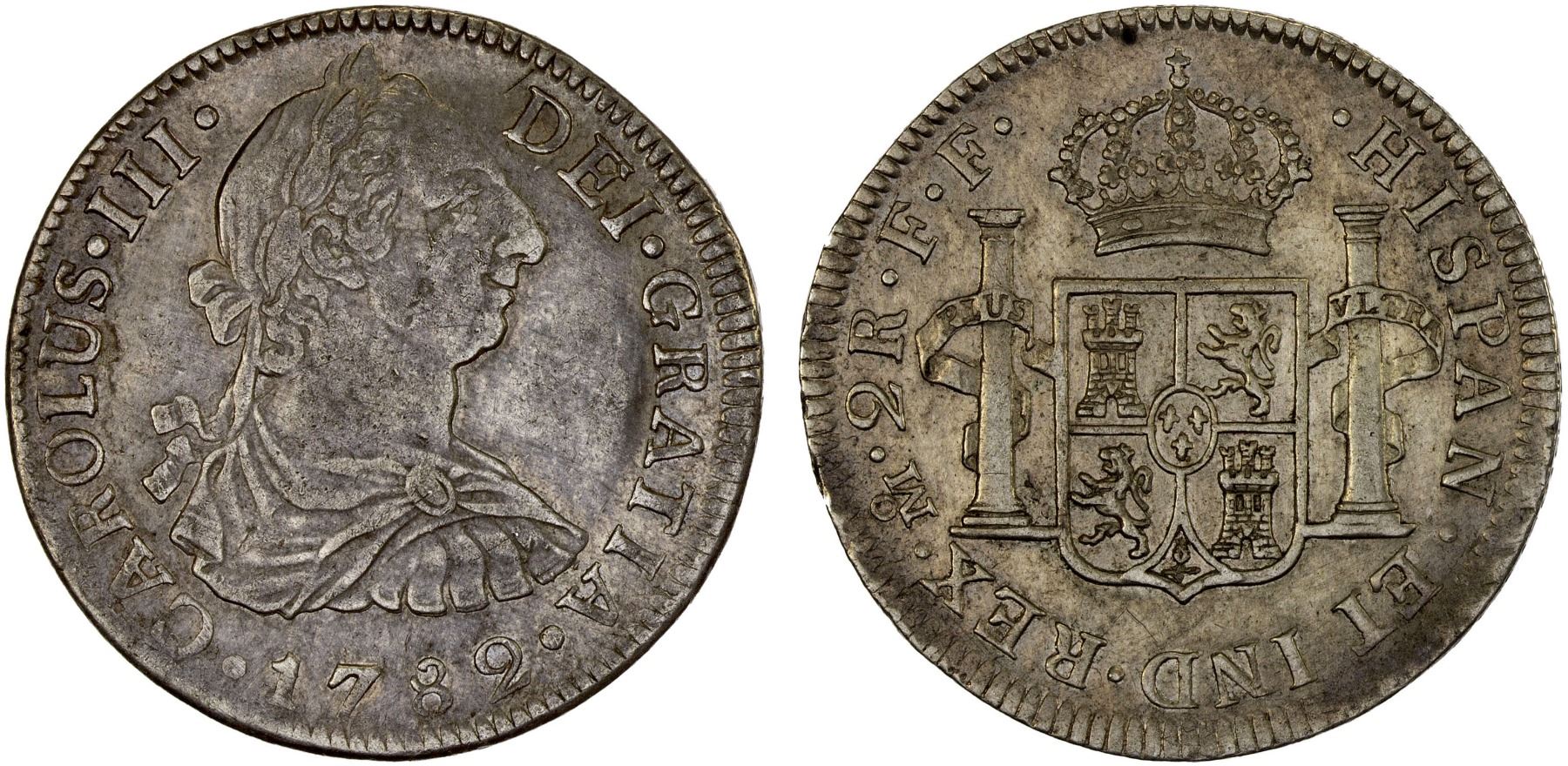 MEXICO: Carlos III, 1759-1788, AR 2 reales, 1782-Mo, KM-88.2, assayer FF, some luster, XF.