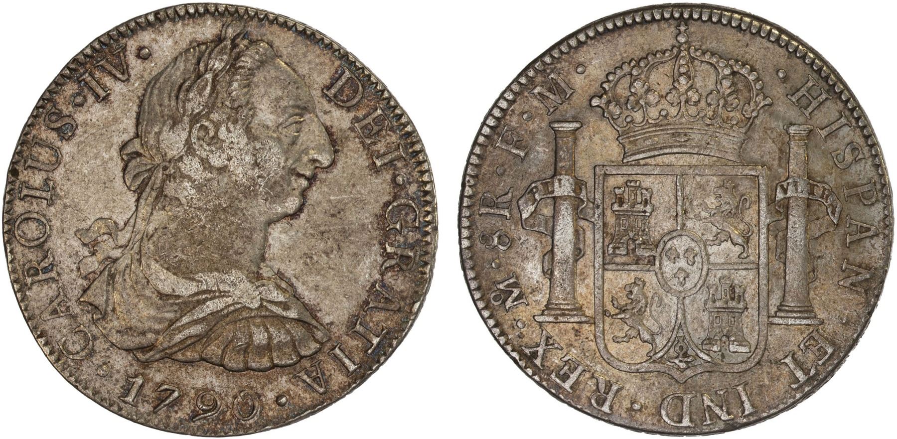 MEXICO: Carlos IV, 1788-1808, AR 8 reales, 1790-Mo, KM-107, assayer FM, transitional type (Carlos III bust, ordinal IV), some obverse hairlines, lightly toned, XF.