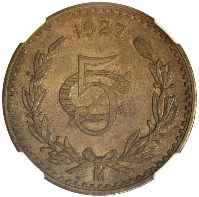 MEXICO: Estados Unidos, 5 centavos, 1927, KM-422, NGC graded MS64 BR.